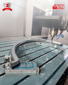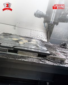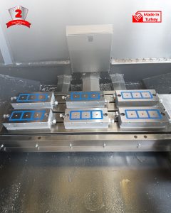 It is energy-efficient; no power is required during machining. It excels in drilling operations and enables machining on 5 sides of the workpiece. Its practical design easily adapts to various connection types.